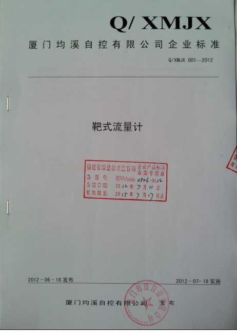 靶式流量計企業(yè)標(biāo)準(zhǔn)